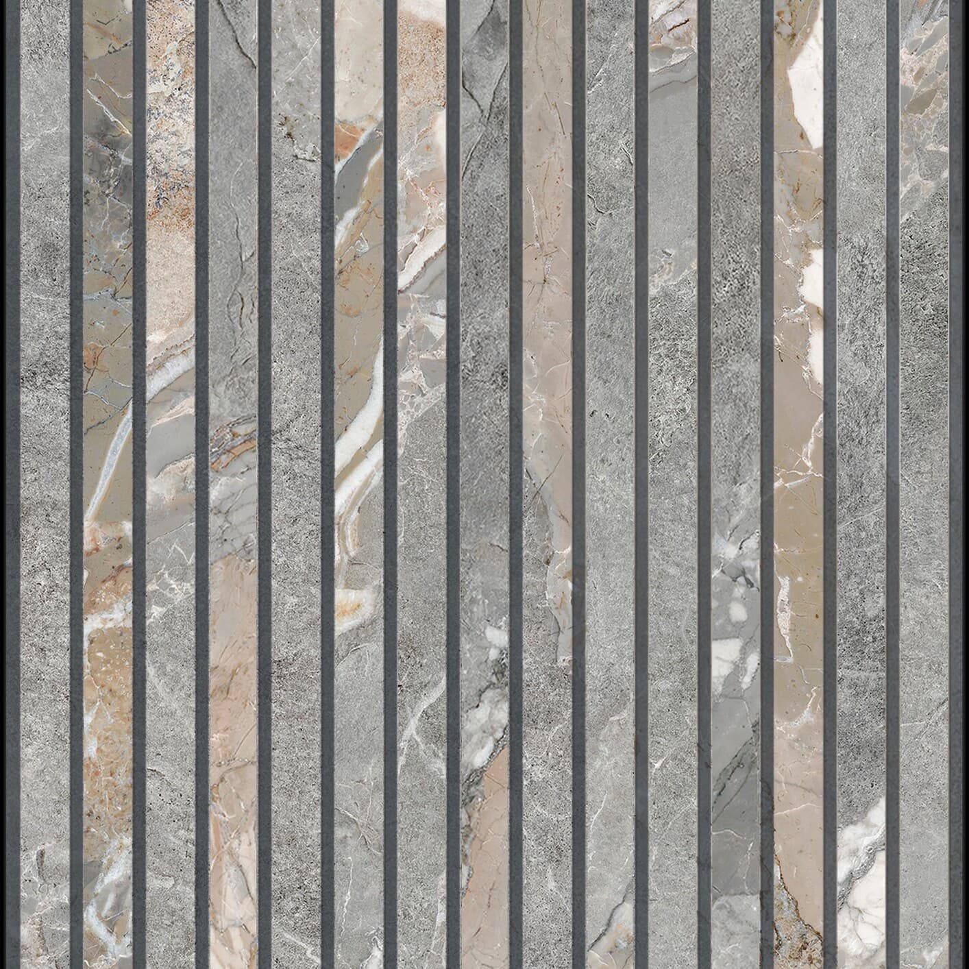 A porcelain large-format rock blend porcelain tile paired with a decorative matching tile, creating a seamless and stylish natural stone-inspired look for any space.