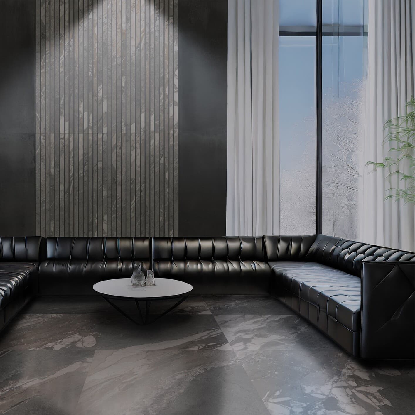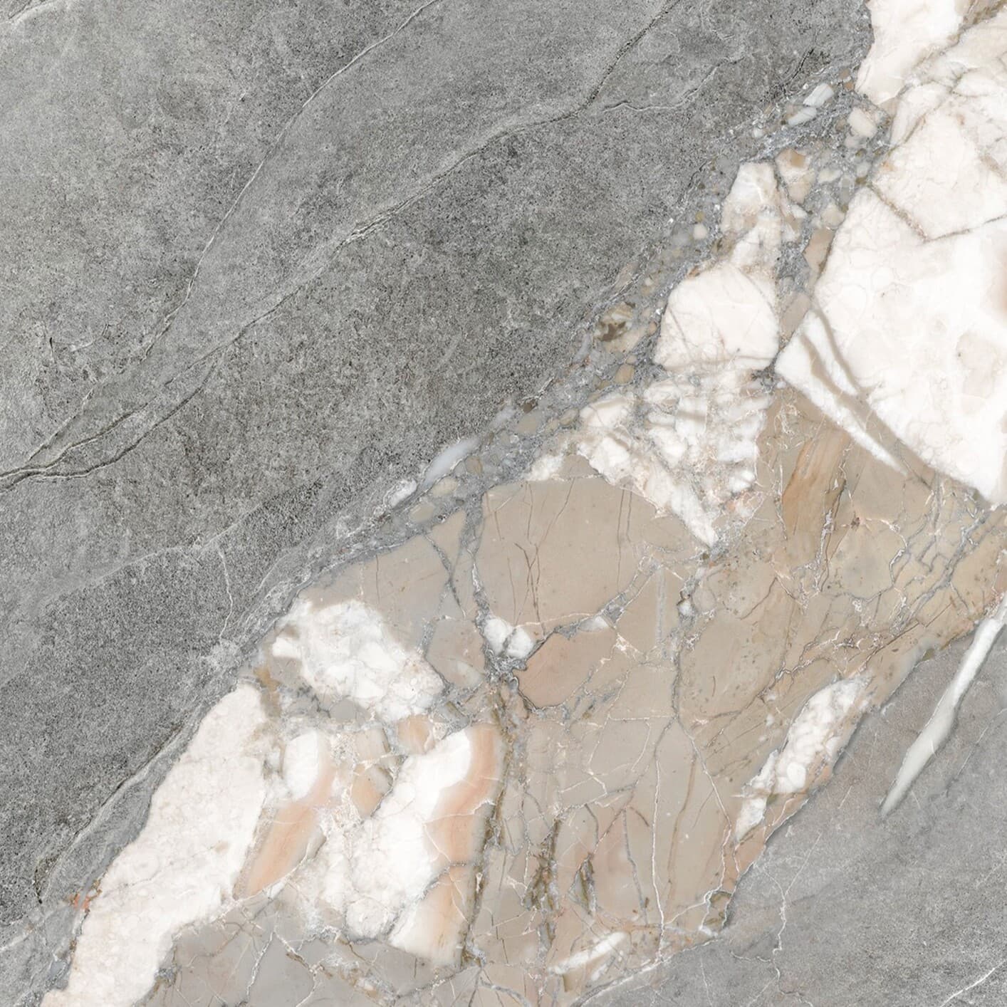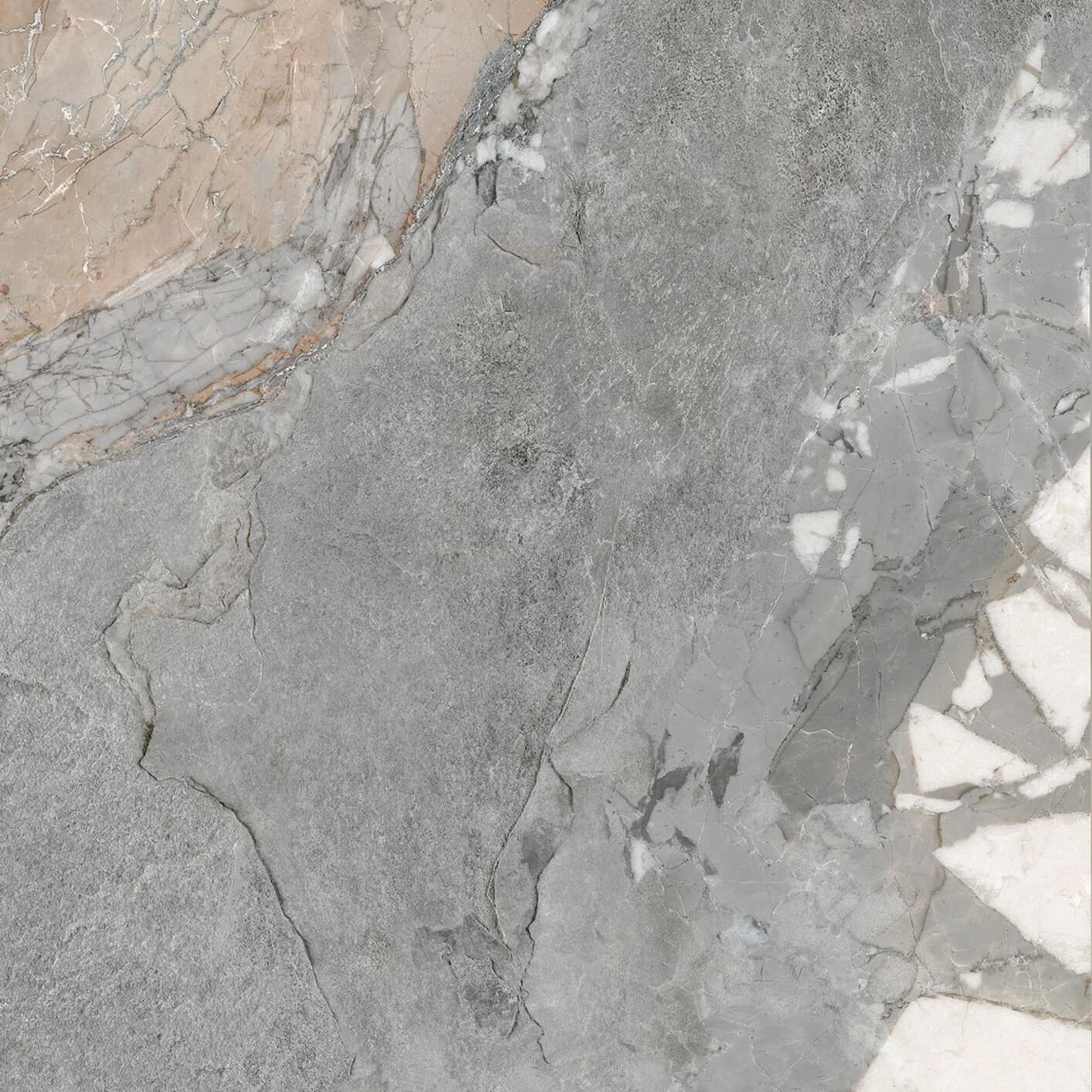 A porcelain large-format rock blend porcelain tile paired with a decorative matching tile, creating a seamless and stylish natural stone-inspired look for any space.
